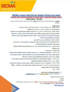 מפגש פורום Data Driven Supply Chain במסגרת ISCMA " Next-Gen Supply Chain: רתימת טכנולוגיות מתקדמות לגמישות ויעילות תפעולית- באמזון AWS